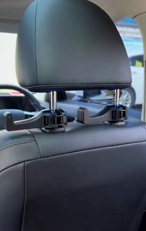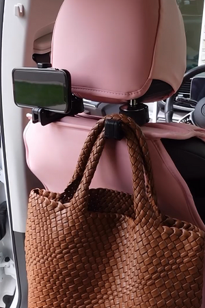 Das Set enthält zwei Haken, die einfach an der Kopfstütze angebracht werden können, um mehr Stauraum zu schaffen.