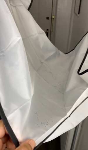 Das Cape hat einen Saugnapf, der einfach am Spiegel befestigt wird. So entsteht ein Zelt, das Haare auffängt.