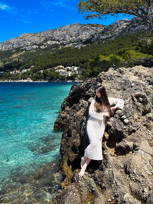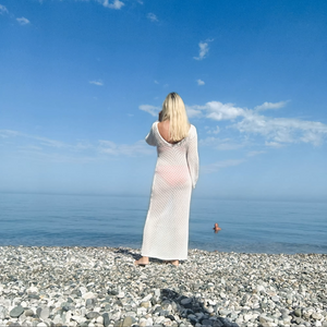 Mit seinem offenen Rücken und entspannten Schnitt bietet das Kleid ganztägigen Komfort, ideal für Strandspaziergänge oder entspannte Abende.