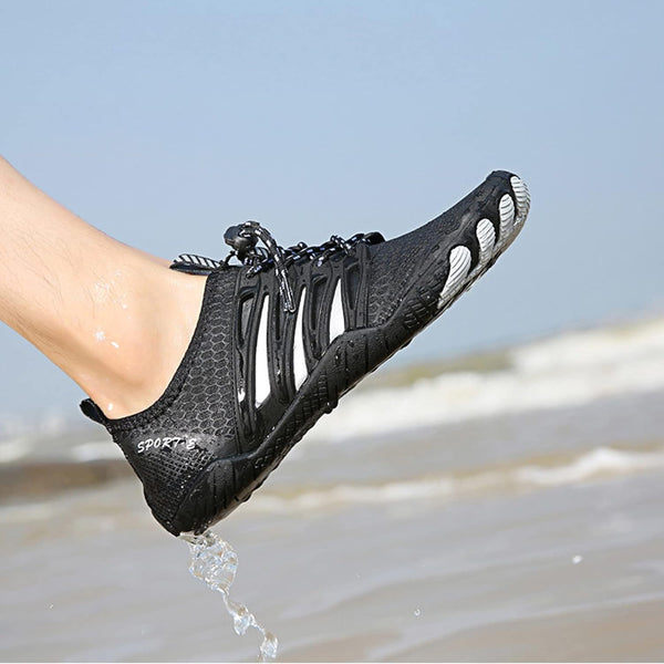 Mit AquaStride™ können Sie unbesorgt über felsige Pfade und unebenes Gelände wandern. Der rutschfeste Halt sorgt dafür, dass Sie sicher und stabil bleiben, egal wohin Ihre Abenteuer Sie führen.