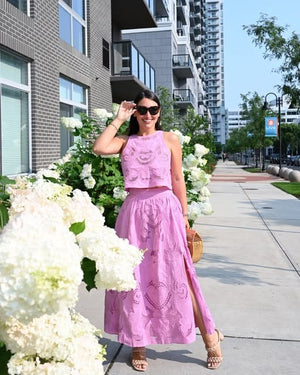 Das Set ist ideal für warme Tage, kann aber mit einer Jacke kombiniert werden, um es auch an kühleren Tagen zu tragen.