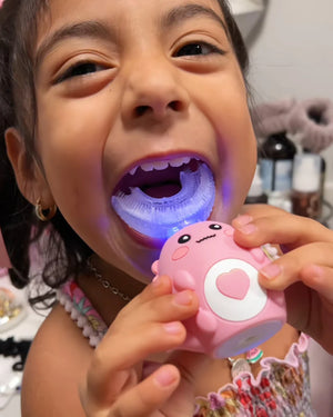 Seit wir den Brushasaur™ haben, putzt meine Tochter endlich gerne ihre Zähne. 😍 Die U-Form macht es super einfach und die blaue Lichtfunktion ist einfach faszinierend für sie. Keine Tränen mehr, nur noch Lächeln!