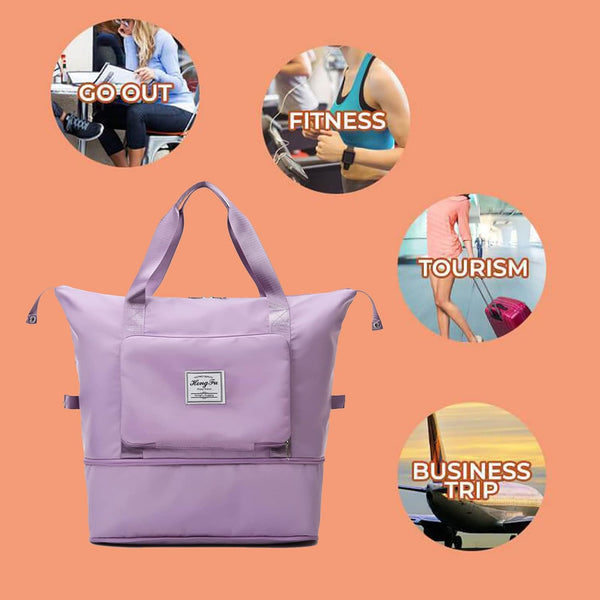 Die CarryMax™ Tragetasche bietet eine praktische Lösung für geordnete Reisen. Mit ihrer Fähigkeit, nasse und trockene Gegenstände zu trennen, und ihrem robusten, wasserabweisenden Material sorgt sie für ein sorgenfreies Abenteuer. Ideal für Frauen, die viel unterwegs sind.