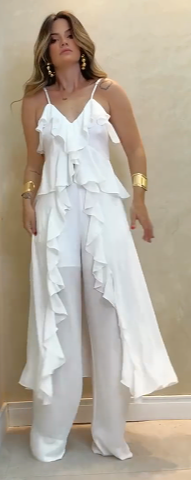 Die elegante Rüschenverzierung und die luftigen, weiten Hosen machen Sie zum Hingucker bei Veranstaltungen. Sie fühlen sich stilvoll und komfortabel, egal wo Sie sind.