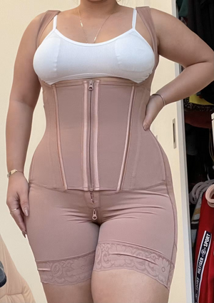 Erleben Sie, wie unsere CurveLuxe™ Shapewear Ihre Taille, Ihren Bauch und Ihre Oberschenkel glättet und Ihnen eine schlanke Silhouette verleiht. Genießen Sie den Komfort und die Unterstützung den ganzen Tag, während Sie Ihre Kurven betonen.