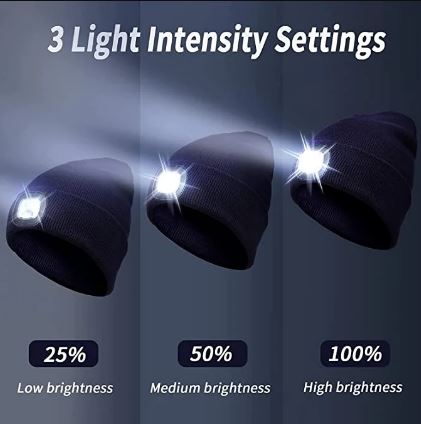 Das LumiBeanie™ verfügt über drei Helligkeitsstufen: niedrig, mittel und hoch. So haben Sie immer die richtige Beleuchtung für jede Situation.