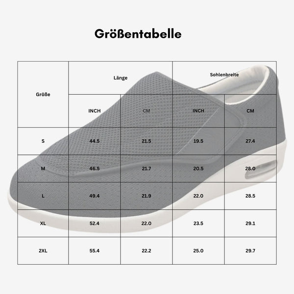 Bieten Sie Ihren schmerzenden, geschwollenen Füßen mit adaptiver Dämpfung und bequemen Klettverschlüssen sofortige Erleichterung.