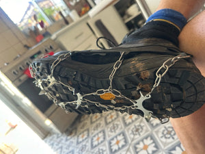 Die Spikes bieten besten Halt auf Schnee und Eis, sind jedoch nicht für Innenräume geeignet.