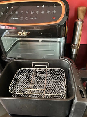 Das kompakte Design des FryStack™ ist mit den meisten Heißluftfritteusen kompatibel.