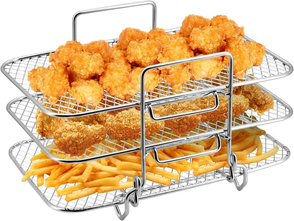 FryStack™ optimiert Ihre Kochroutine, indem es die Kapazität Ihrer Heißluftfritteuse erhöht und die Zubereitungszeit verkürzt.