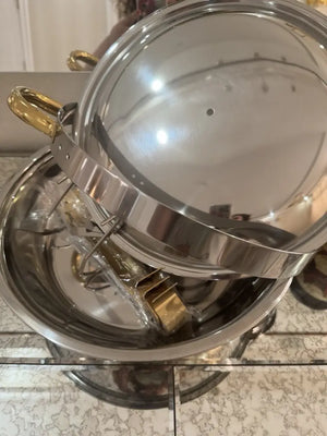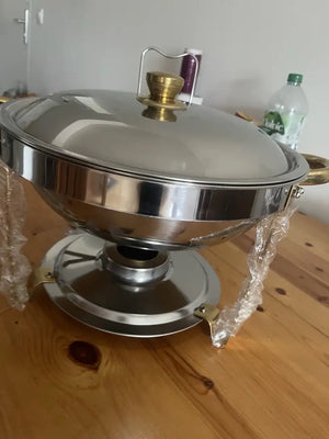 Mit der HeatServe™-Schale bleibt Ihr Essen dank der eleganten, goldenen Wärmeschale immer warm und frisch – perfekt für Hochzeiten, Partys und Buffets.