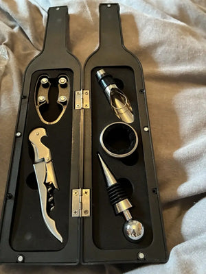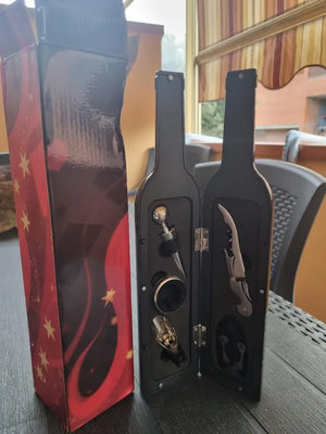 Das VinoVault™ Set wird in einer dekorativen, flaschenförmigen Box geliefert. So haben Sie alle Werkzeuge ordentlich verstaut und leicht zugänglich. Es ist nicht nur praktisch, sondern auch ein echter Hingucker.
