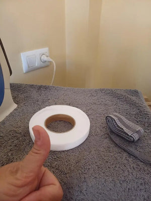 Einfach das Band anbringen, leicht befeuchten und für 10–15 Sekunden mit einem Bügeleisen fixieren.