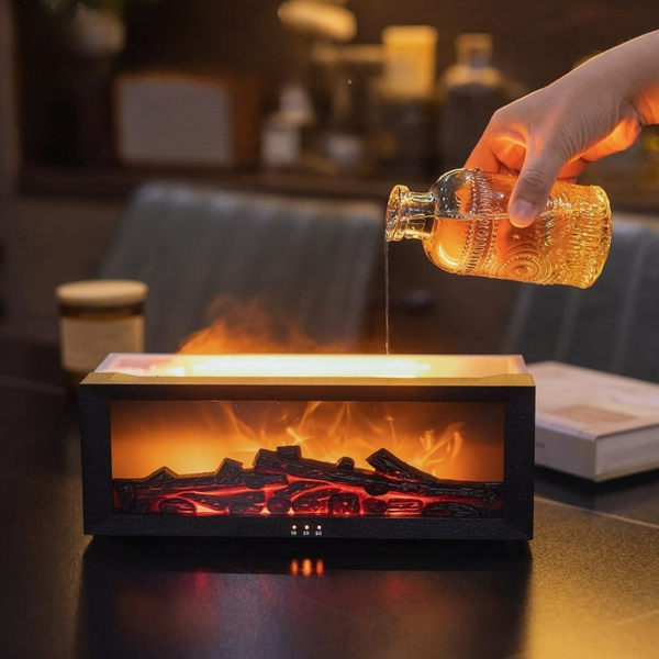 Der Flaroma™ Diffuser verwendet LED-Licht und feinen Nebel, um ein realistisches Flammenspiel zu erzeugen, ohne tatsächliche Flamme oder Hitze.