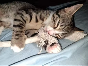 Viele Katzen spielen stundenlang mit KittyKnot™, da das Katzenminzeinfundierte Spielzeug ihre Instinkte weckt und sie zum Jagen animiert.