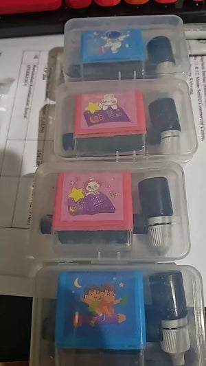 Dank der drehbaren Rolle bietet der Stempel verschiedene Aufgaben bei jedem Druck. Das vermeidet Wiederholungen und sorgt für abwechslungsreiche Übungen, die Kinder begeistern.