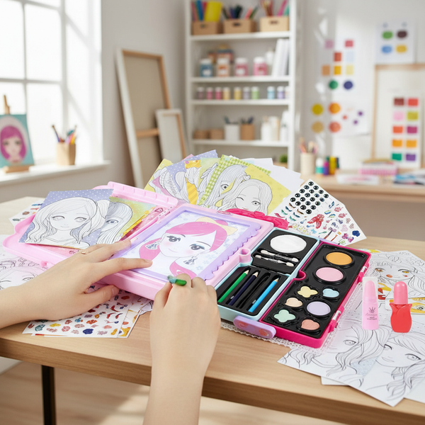 GlamSketch™ verbindet Zeichnen und Schminken: Kinder sehen sofort Resultate, gewinnen Selbstvertrauen und teilen stolz ihre Kunst im Spielkreis.